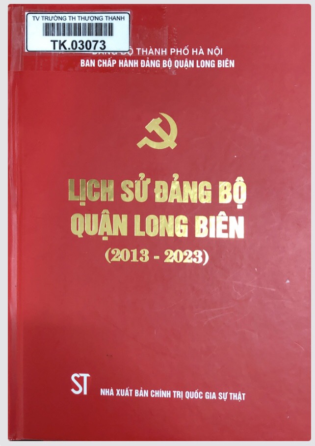 Hôm nay, nhân kỉ niệm 94 năm ngày thành lập Đảng Cộng sản Việt Nam, 20 năm ngày thành lập quận Long Biên, thư viện Trường Tiểu học Thượng Thanh xin gửi đến quý thầy cô giáo và các em học sinh cuốn sách: “Lịch sử Đảng bộ quận Long Biên (2013 – 2023)” do Đảng bộ Thành phố Hà Nội, Ban Chấp hành Đảng bộ quận Long Biên biên soạn, nhà xuất bản Chính trị Quốc gia Sự thật thẩm định và xuất bản năm 2023, với độ dày 310 trang. Sách được in 1000 bản, khổ sách 14,5 x 20,5 cm.