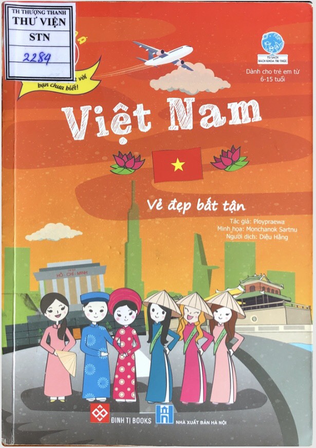 V. Thông tin thư mục: Việt Nam – Vẻ đẹp bất tận/ Lời: Ploypraewa; Minh họa: Monchanok Sartnu; Diệu Hằng dịch.- H.: Hà Nội; Công ty Văn hóa Đinh Tị, 2019.- 56r.:minh họa; 21cm.- (Tủ sách Bách khoa thư tri thức. Đông Nam Á-những điều tuyệt vời bạn chưa biết!) (Dành cho trẻ em từ 6 – 15 tuổi).