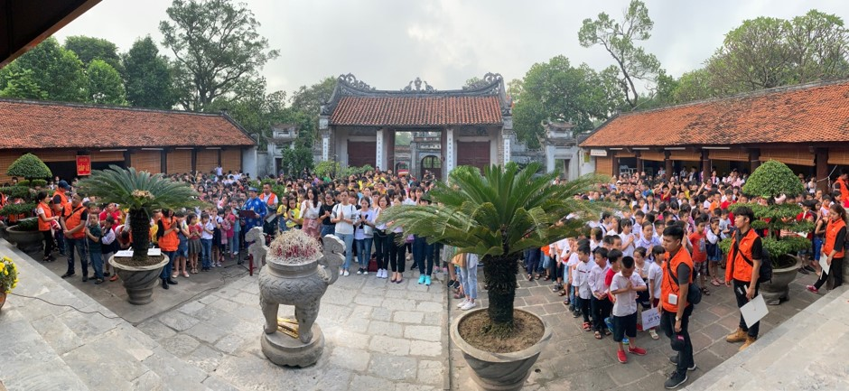 Toàn thể các giáo viên cùng hơn 900 em học sinh đã có mặt trước sân Rồng để dâng lễ, thắp hương và nghe thuyết minh tìm hiểu sự tích thành Cổ Loa. Sau đó từng lớp các em học sinh được đi tham quan các cảnh đẹp tại thành dưới dự giới thiệu của các anh chị hướng dẫn viên du lịch. Các bạn học sinh không khỏi ngạc nhiên trước tài xây thành, đắp lũy của vua tôi An Dương Vương, tự hào về truyền thống dựng nước và giữ nước của cha ông ta. Các em chăm chú lắng nghe, ghi chép và đặt những câu hỏi về An Dương Vương, Mỵ Châu hay nỏ thần…Sau khi được các cô hướng dẫn viên giải thích, các em đã hiểu và tích lũy thêm được những kiến thức lịch sử bổ ích. Qua đó, các em thêm biết ơn thế hệ đi trước và tự hào về truyền thống lịch sử nước ta.