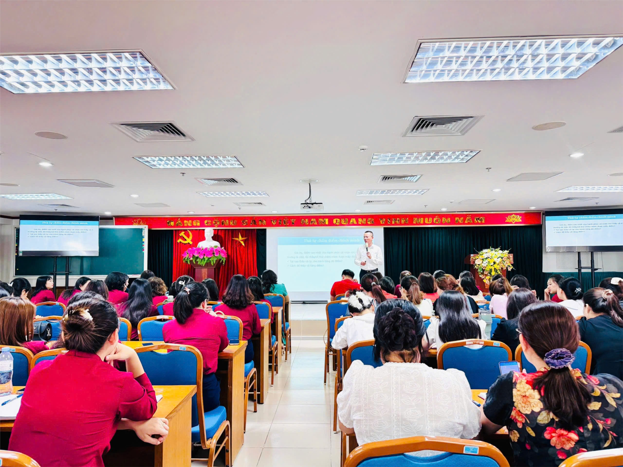 Tại buổi tập huấn, Tiến sĩ Cao Xuân Liễu - Phó Trưởng khoa Tâm lí, Học viện quản lý giáo dục đã chia sẻ nhiều nội dung thiết thực như: các tiêu chí của một “trường học hạnh phúc”, phương pháp xây dựng văn hóa ứng xử tích cực trong nhà trường, cách tổ chức các hoạt động gắn kết giữa giáo viên – học sinh – phụ huynh, cũng như các biện pháp chăm sóc sức khỏe tinh thần cho học sinh và giáo viên.
