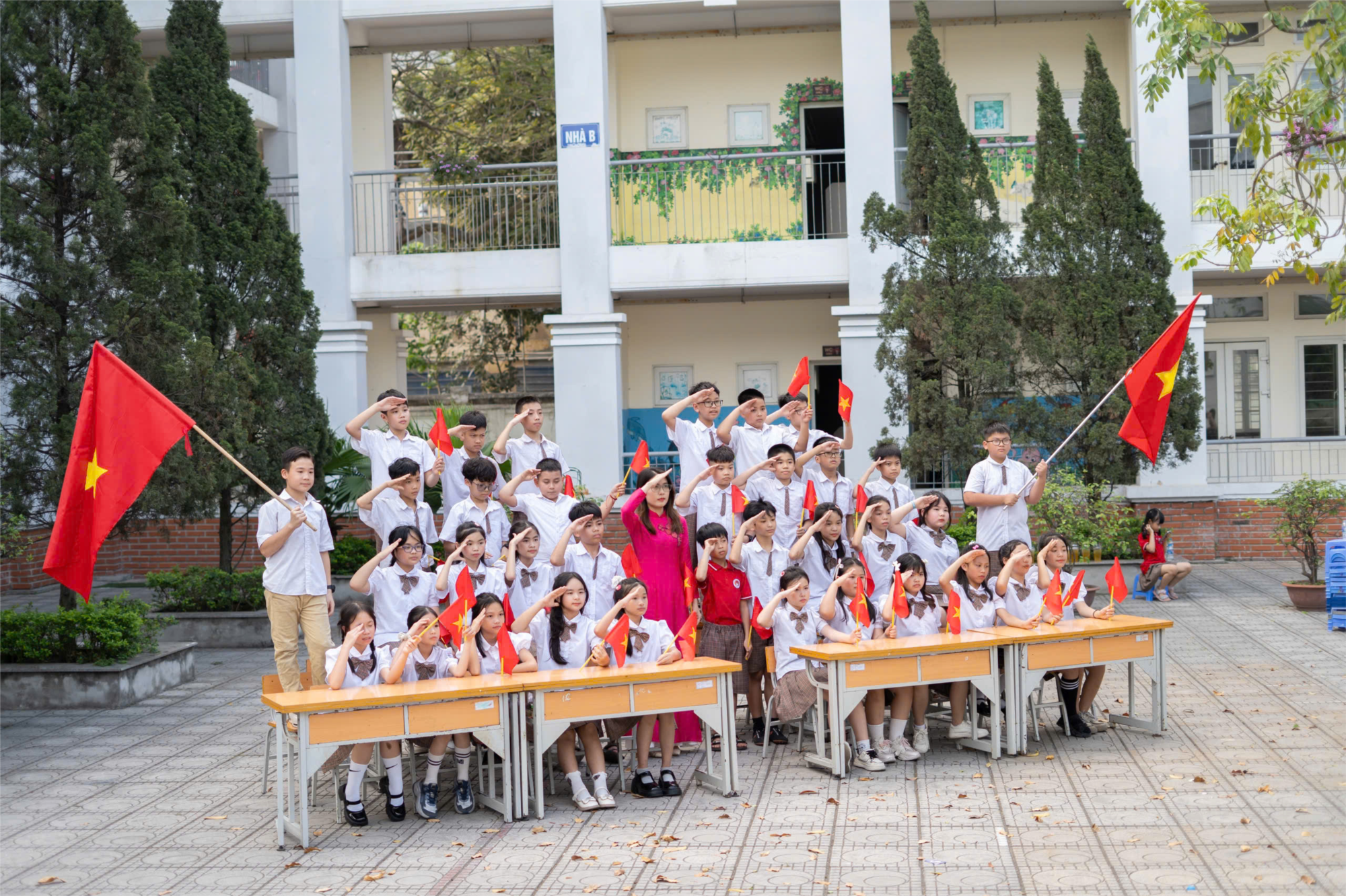 Trong những ngày này, thầy cô và các em học sinh Trường tiểu học Thượng Thanh cùng nhau trang trí, treo những lá cờ đỏ thắm làm đẹp thêm cho không gian lớp học, khuôn viên nhà trường. Vẻ đẹp của ngôi trường khi được trang trí cờ Tổ quốc mang một nét trang nghiêm, rực rỡ và đầy tự hào. Những lá cờ đỏ sao vàng tung bay trong gió không chỉ tô điểm cho không gian trường học thêm sinh động, mà còn góp phần quan trọng trong việc giáo dục phẩm chất cho học sinh, bồi dưỡng lòng yêu nước, niềm tự hào dân tộc và tinh thần biết ơn đối với thế hệ cha ông đã hy sinh vì độc lập, tự do.